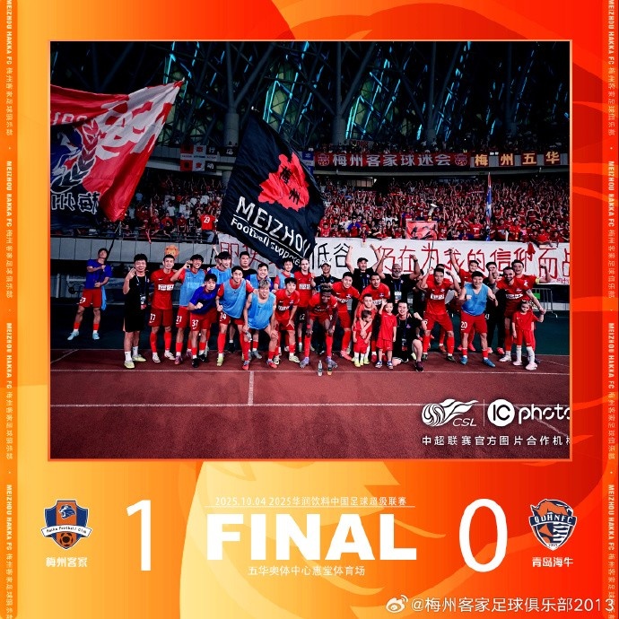 北京工夫10月4日19:00,2025华润饮料中国足球超等联赛第24轮比赛,梅州客家镇守主场对阵青岛海牛。