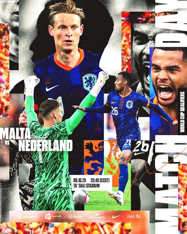 荷兰队官推晒海报预热世初赛客战马耳他:德容、加克波等东说念主出镜
