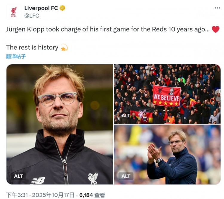 2015年10月17日,克洛普迎来握教利物浦的首场比赛,最终利物浦客场0-0战平热刺,利物浦官方社媒晒出像片,总结阿谁十分的日子。