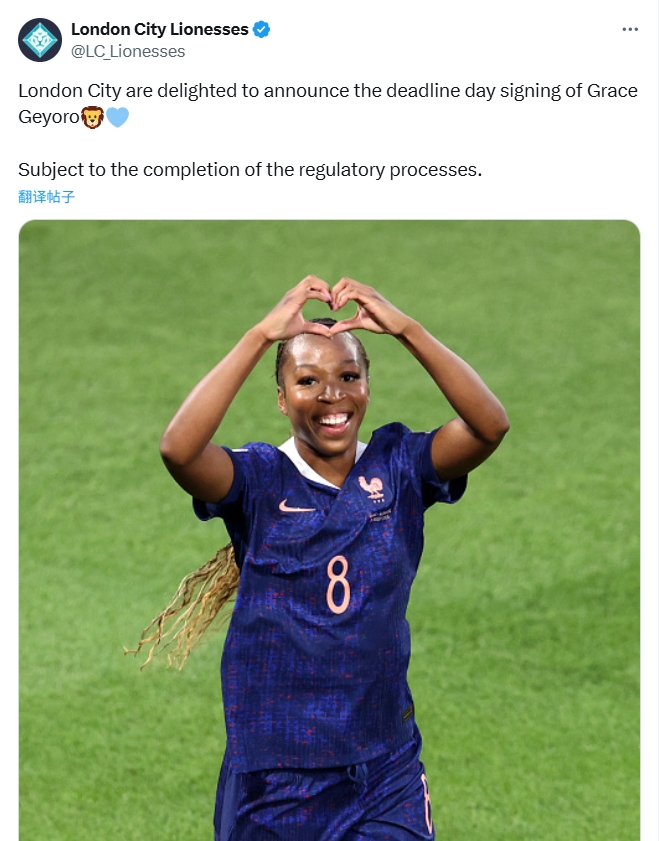 转会费140万镑创历史记载!官方:伦敦城雌狮女足签28岁盖耶罗