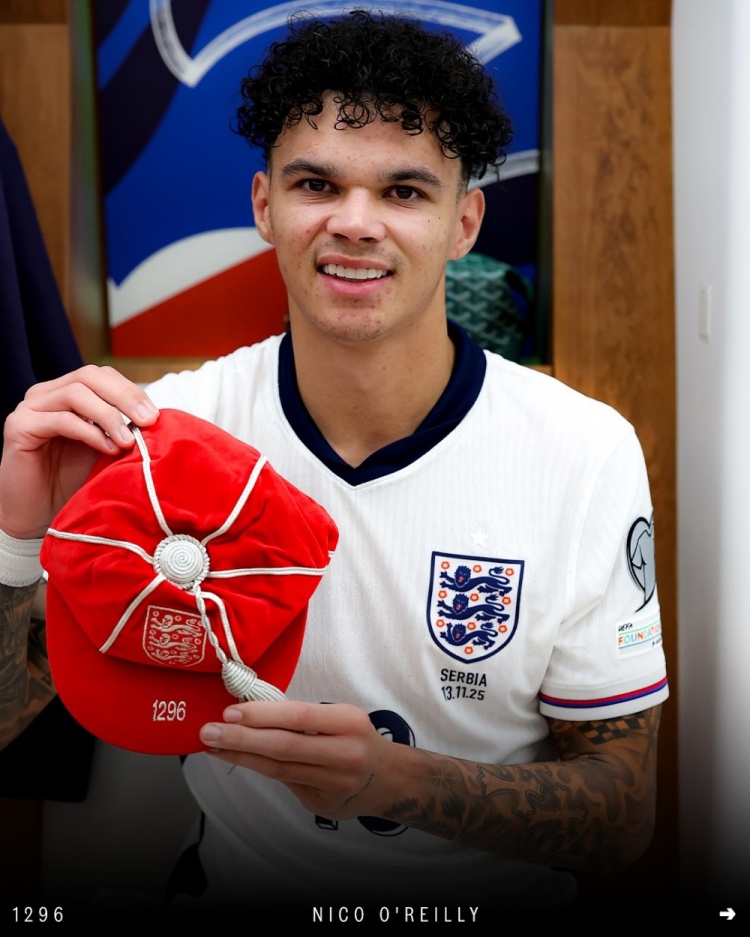 奥赖利是英格兰队史第1296位出场球员,赛后斯通斯在更衣室内为他颁发了系念帽子。