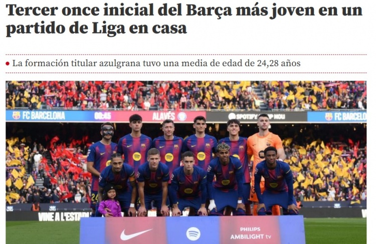 芳华风暴!世体:巴萨赢阿拉维斯的首发声势平均年岁为24.28岁