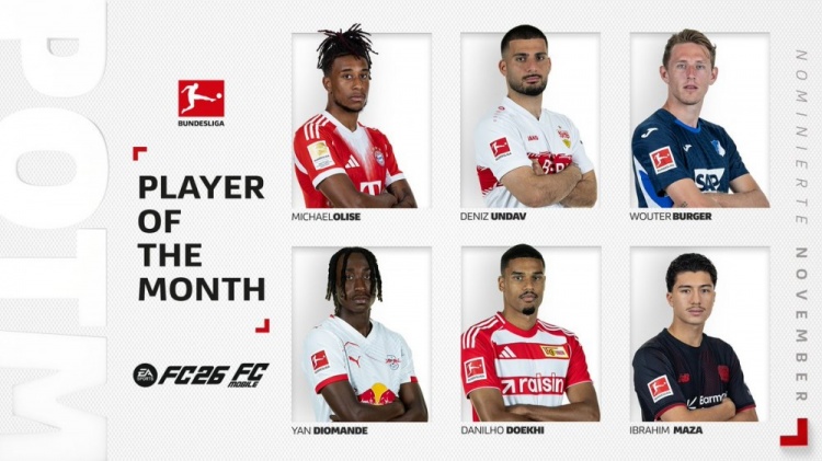 12月3日讯 德甲官方公布了11月最好球员的候选名单,奥利塞、翁达夫在列。