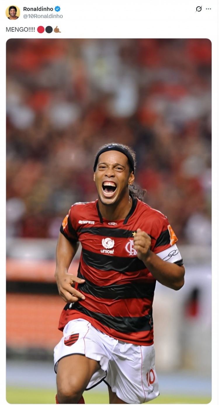 巴西据说球星罗纳尔迪尼奥更新社媒动态,晒出我方遵循弗拉门戈时刻的相片,配文:“门戈!”