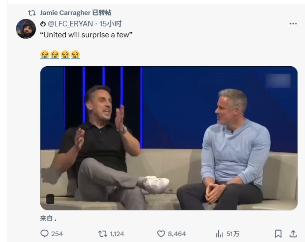 惊喜一经惊吓😂卡拉格转发内维尔采访:我合计曼联会带来惊喜