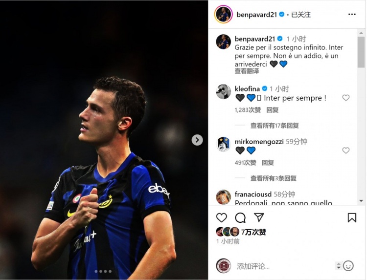 帕瓦尔社媒晒成立穿国米球衣的像片,并配文:“感谢你们无限的守旧。始终的国米。这不是告别,而是后会有期。”