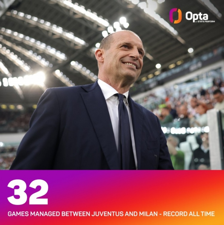 32场!高出特拉帕托尼,阿莱格里成执教米兰和尤文交手最多主教学