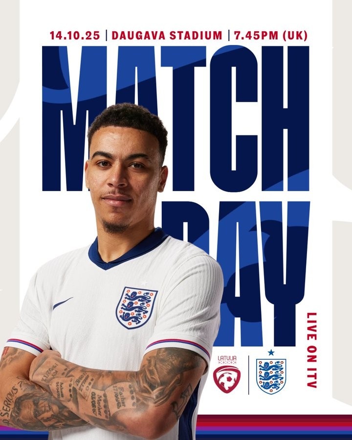 英格兰官推配文:“三狮军团在拉脱维亚,让咱们用一个好效力规律十月国外比赛日征途。”