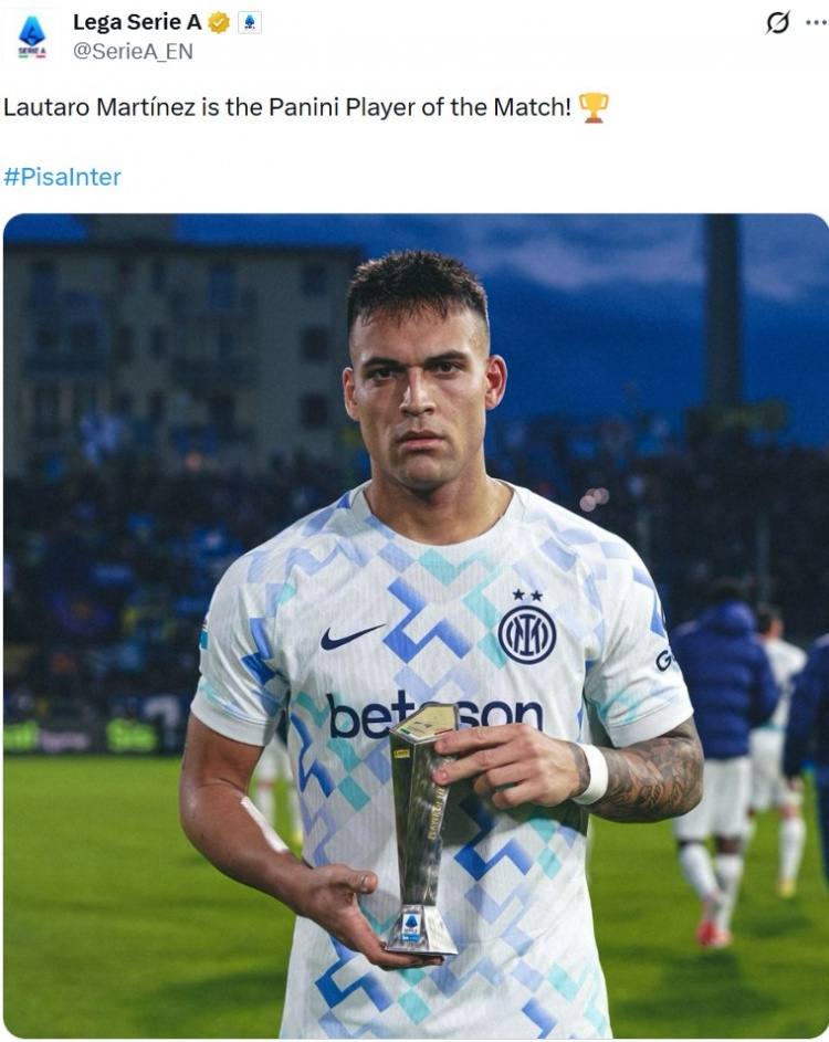 本场比赛劳塔罗梅开二度,赛后他也当选意甲官方评比出的本场最好球员。