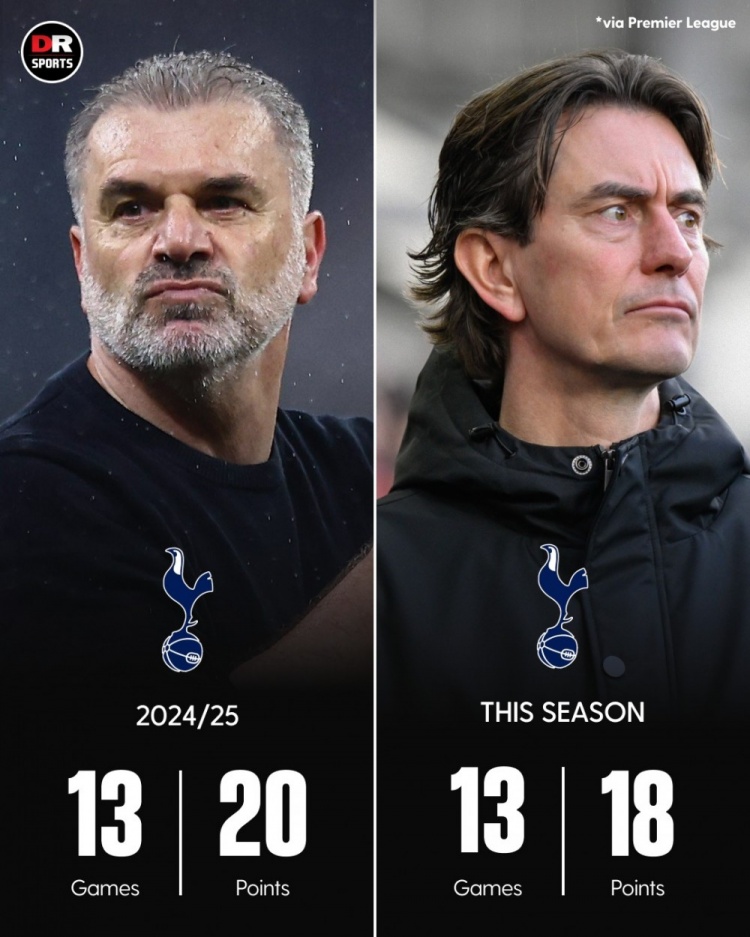 得益欠安!弗兰克握教热刺本赛季13轮18分,比上赛季同时还少2分