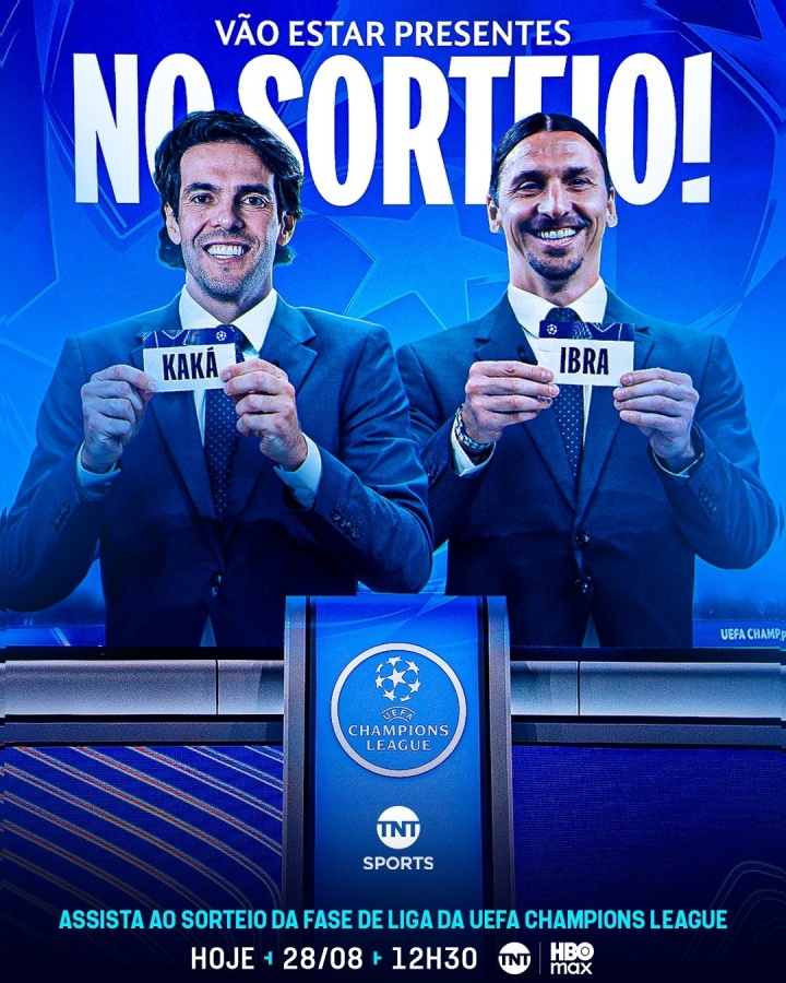 08月28日讯 转播商TNT说明,卡卡和伊布将出席今晚的欧冠抽签,担任抽签嘉宾。