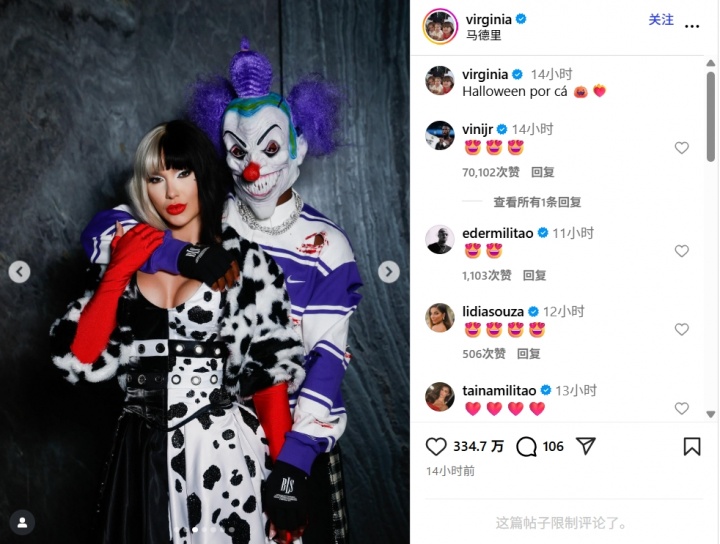 10月30日讯 万圣节行将到来,维尼修斯女友弗吉尼亚在社媒上共享了我方与维尼修斯的万圣节装饰。