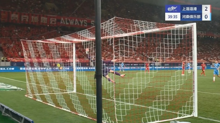 比赛第40分钟,河南前场轻易球契机,纳萨里奥轻易球平直攻门击中门框。